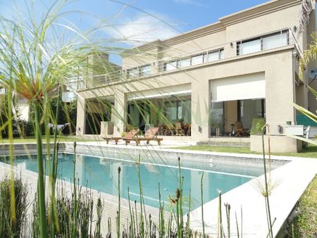 4 dormitorios en Suite, uno de ellos en planta baja, escritorio y amplio palyroom. TODOS LOS AMBIENTES cuentan con equipos indiviuales de Aires Art cool, cortinas y hasta black out motorizado en dormitorios y play. Toda desarrollada en dos plantas y muy conectada con el Lago, su galeria con parrilla, su muelle propio y la piscina (CLIMATIZADA) . Sobre un lote casi 900 m2 una Importante casa moderna de 450 m2 totales, con detalles y categoria. Su Orientación es inmejorable. Super funcional, luminosa y adaptable para cualquier familia. Detalles de diseño y excelentes terminaciones.